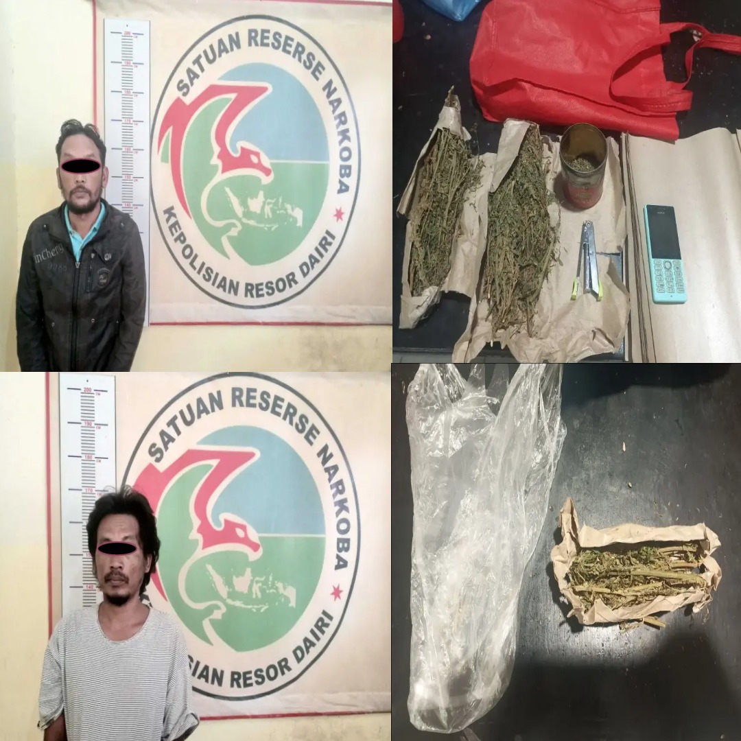 Dairi24jam || Tiga Lingga—Sat Narkoba Polres Dairi meringkus 2 tersangka kasus narkotika jenis Ganja.