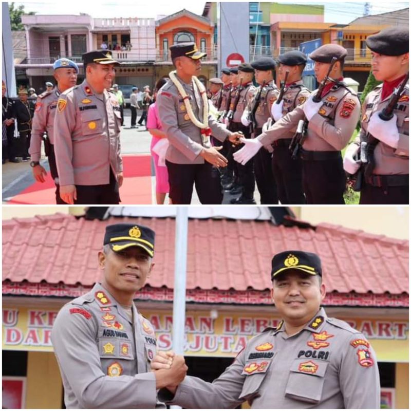 AKBP Agus Bahari kemudian di sambut oleh AKBP Reinhard Nainggolan