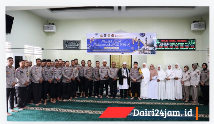 Dairi24jam||Sidikalang – Polres Dairi mengelar kegiatan Peringatan Maulid Nabi Muhammad SAW 1446 H Di Mesjid Husnul Khotimah Polres Dairi Jalan SM. Raja Kecamatan Sidikalang Kabupaten Dairi. Kamis (26/09/2024)