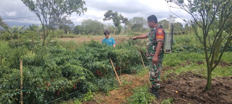 Dairi24jam || Sumbul – Babinsa Koramil 01/Sumbul Kodim 0206/Dairi Sertu Tanger Capah membantu petani melakukan penyemprotan tanaman cabe merah. Penyemprotan dilaksanakan di lahan seluas 0,5 hektar milik bapak Robin Manik yang berada di Desa Pegagan Julu VI, Kecamatan Sumbul, Kabupaten Dairi, Rabu (18/1/2023).