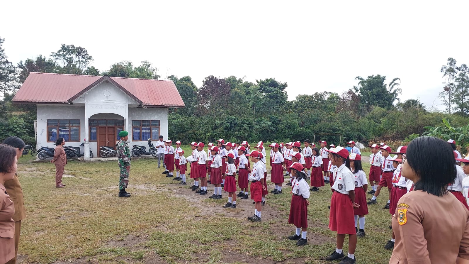 Dairi24jam || SumbulBerlokasi di Halaman SD NEGERI 030347 JUMALA Desa pegagan julu dua Kecamatan sumbul Serda Jr Simamora Babinsa Koramil 01/Sumbul Kodim 0206/Dairi memberikan Materi Wawasan Kebangsaan dan Cinta Tanah Air kepada Siswa-siswi baru SD NEGERI 030347 JUMALA Kecamatan Sumbul.