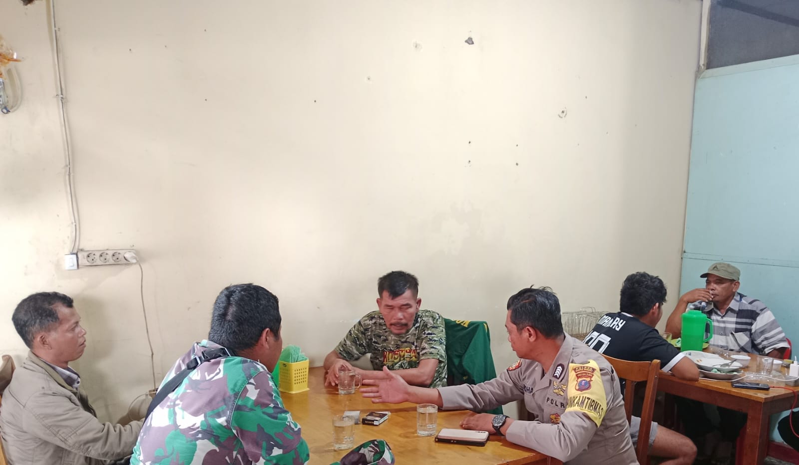 Dairi24jam || TinadaBabinsa Koramil 06/Kerajaan Serda Sakkarias Haloho    bersama Bhabinkamtibmas  Kompak dalam berkomunikasi sosial ( Komsos ) bersama warga binaan dengan menemui warga yg sedang santai menikmati kopi di warung membahas Kamtibmas di wilayah binaan.