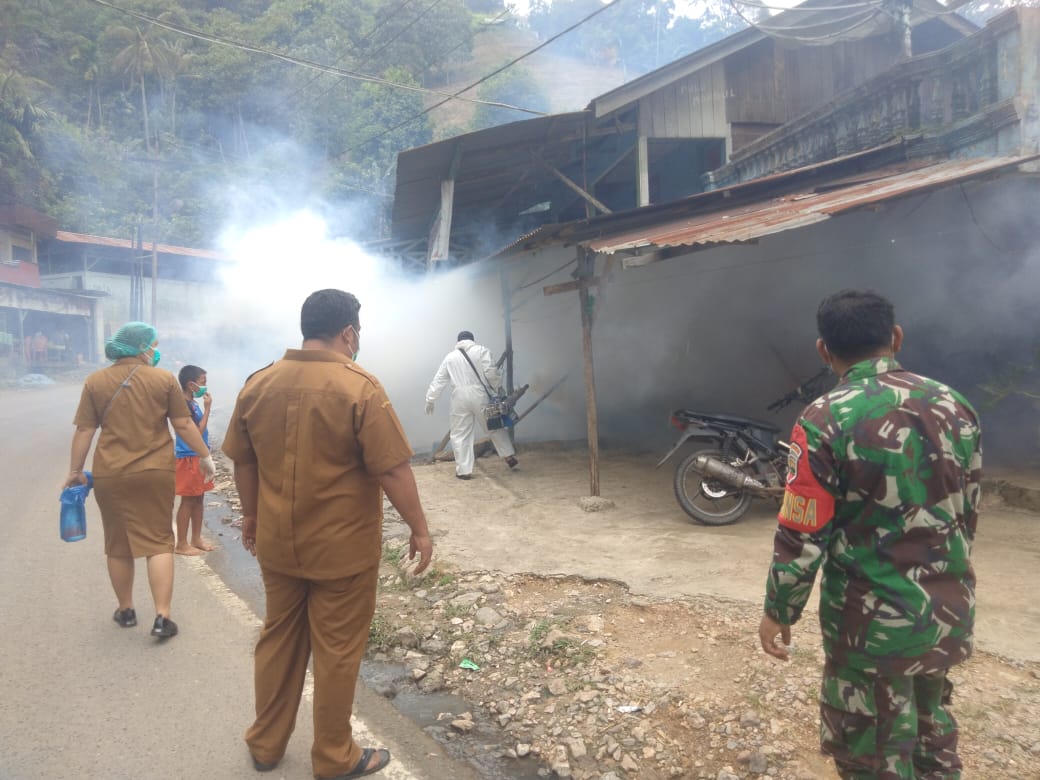 - Dairi24jam || Tanah Pinem—Koramil 05/Tanah Pinem melalui Babinsa Tanah pinem Koptu JA.Ginting melaksanakan pendampingan kegiatan Fogging dari dinas kesehatan tanah pinem Desa kuta buluh Kecamatan.Tanah pinem Kabupaten.Dairi.,Senin (02-10-2023)..