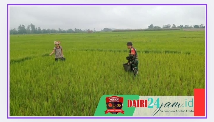 DAIRI24JAM —Babinsa Koramil 01/Sumbul Kodim 0206/Dairi Sertu WP Togatorop melaksanakan pendampingan petani pemupukan padi sawah di Desa linggaraja Kecamatan pegagan hilir Kabupaten Dairi Jumat (14 – 03 – 2025)