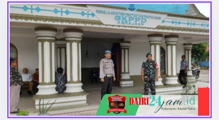 DAIRI24JAM —Babinsa Koramil 06/Kerajaan Sertu Jumain bersama bhabinkamtibmas melaksanakan pengamanan dan monitoring kegiatan ibadah Minggu di gereja GKPPD yang berada di desa Sukaramai ,Kecamatan Kerajaan ,Kabupaten Pakpak Bharat-Sumut,Minggu (23-02-2025)..