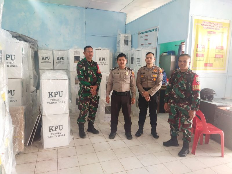 Dairi24jam || Pakpak Bharat – Babinsa Koramil 07/Salak sertu Ramson dan Serda Rikson bersama Bhabinkamtibmas mengawal logistik dan Pengamanan PPK di Kantor kecamatan salak Desa boangmanalu kecamatan salak Kabupaten Pakpak Bharat Minggu (18/02/2024).