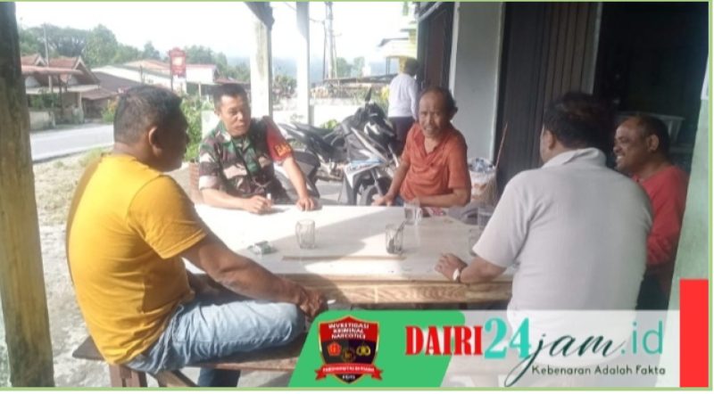 Dairi24jam | Sumbul – Bintara Pembina Desa Koramil 01/ Sumbul jajaran Kodim 0206/ Dairi, Sertu WP Togatorop melaksanakan kegiatan komunikasi sosial (komsos) dengan warga binaan yang dilaksanakan di salah satu kedai kopi milik warga tepatnya di Kelurahan Sumbul, Kecamatan Sumbul, Kabupaten Dairi – Sumut, Senin (25/11/2024).