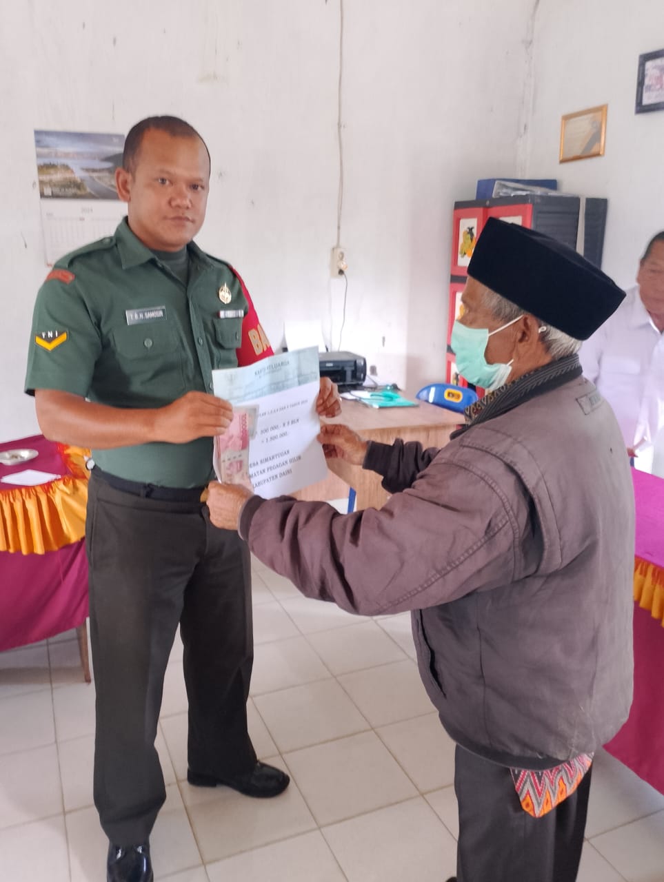 Di kesempatan tersebut,Serda Samosir menyampaikan bahwa Pemerintah Republik Indonesia melalui Pemerintah Desa memberikan bantuan sosial kepada warga lewat program bantuan langsung tunai yang bersumber dari Dana Desa (BLT DD), diperuntukan bagi warga penerima manfaat.