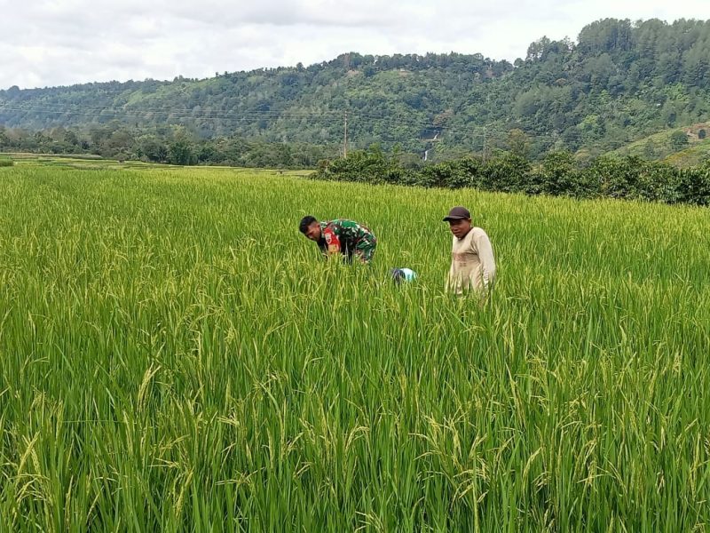Dairi24jam || SumbulBabinsa Koramil 01/Sumbul Kopda W.F.Sitorus bersama Petani melaksanakan kegiatan pemantauan kondisi tanaman padi di lahan milik Bpk Bahar Bakara di desa pegagan julu VI Kecamatan Sumbul,Senin