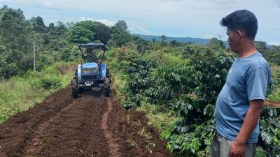 Kegiatan pengolahan lahan ini dilakukan di lahan milik Bapak Antoni Sipakar dengan menggunakan mesin traktor roda 4.