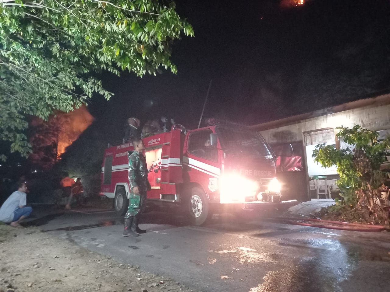 Dengan membawa alat pemadam kebakaran (APK) personil Koramil 01/Sumbul Serda Sinaga