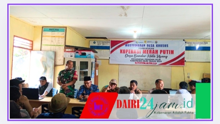 DAIRI24JAM – Dalam rangka menindaklanjuti instruksi Presiden Republik Indonesia, nomor 9 tahun 2025 tentang pembentukan Koperasi Desa Merah Putih, Babinsa Koramil 01/Sumbul, Kodim 0206/Dairi, Serda Torop Samosir menghadiri pembentuk Koperasi Desa “Merah Putih” di Desa Bandarhutausang Kecamatan Pegagan Hilir Kabupaten Dairi, Kamis (22/05/2025).