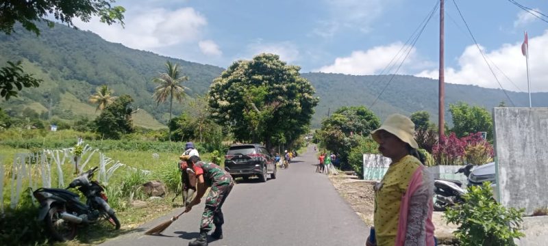 Dairi24jam || SumbulPersonel Bintara Pembina Desa anggota Koramil 01/Sbl jajaran Kodim 0206/Dairi Serda Eriston Simbolon melaksanakan kegiatan Gotong Royong yang dilaksanakan di di Desa Silalahi 1 Kecamatan Silahisabungan Kabupaten Dairi,Selasa (13/2/2024).