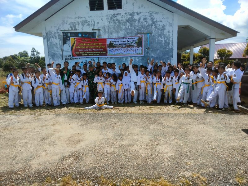 Dairi24jam || Sumbul—Guna menjaga diri dan meningkatkan ilmu beladiri di kalangan anak-anak muda dan mudi Babinsa Koramil 01/sumbul Kodim 0206/Dairi Serma Warbert J Sihombing melaksanakan pendampingan malam akrab dan kenaikan sabuk bagi peserta TAEKWONDO yg terdiri dari siswa/Siswi SMA,SMP dan SD Sekecamatan Sumbul dan dilaksanakan di lapangan SD Barisan Nauli , Kecamatan sumbul , Kabupaten Dairi , Sabtu (23-12-2023)..