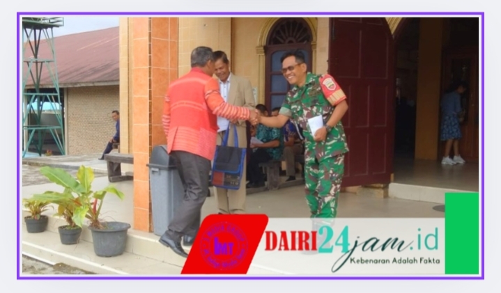Babinsa Koramil 01/Sumbul Kodim 0206/Dairi Serma W.j Sihombing melaksanakan Pengamanan sekaligus Pemantauan kegiatan Ibadah Minggu yang dipimpin oleh Pdt R.Br Siagian dan dihadiri jemaat sekitar 150 orang di Gereja HKBP SUMBUL Jln sisingamaraja kec Sumbul kab Dairi Minggu (20/07/25).
