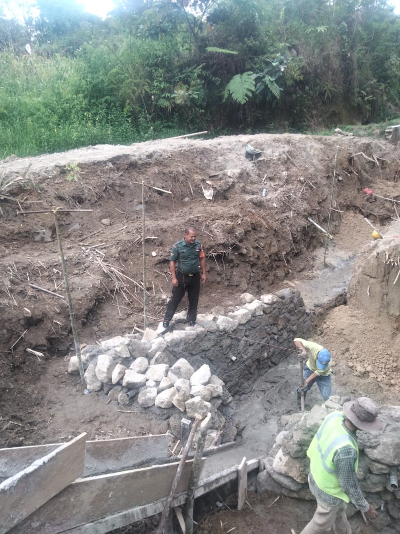 Babinsa Koramil 01 Sumbul Mengecek Pembangunan Irigasi Desa Binaan