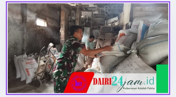 DAIRI24JAM — Monitoring stabilitas harga gabah dan beras di tingkat petani, Babinsa Koramil 01/sumbul Kodim 0206/Dairi Koptu Wf Sitorus, melakukan kunjungan ke Kilang Padi yang ada di wilayah Koramil 01/Sumbul, Senin 25-08-2025