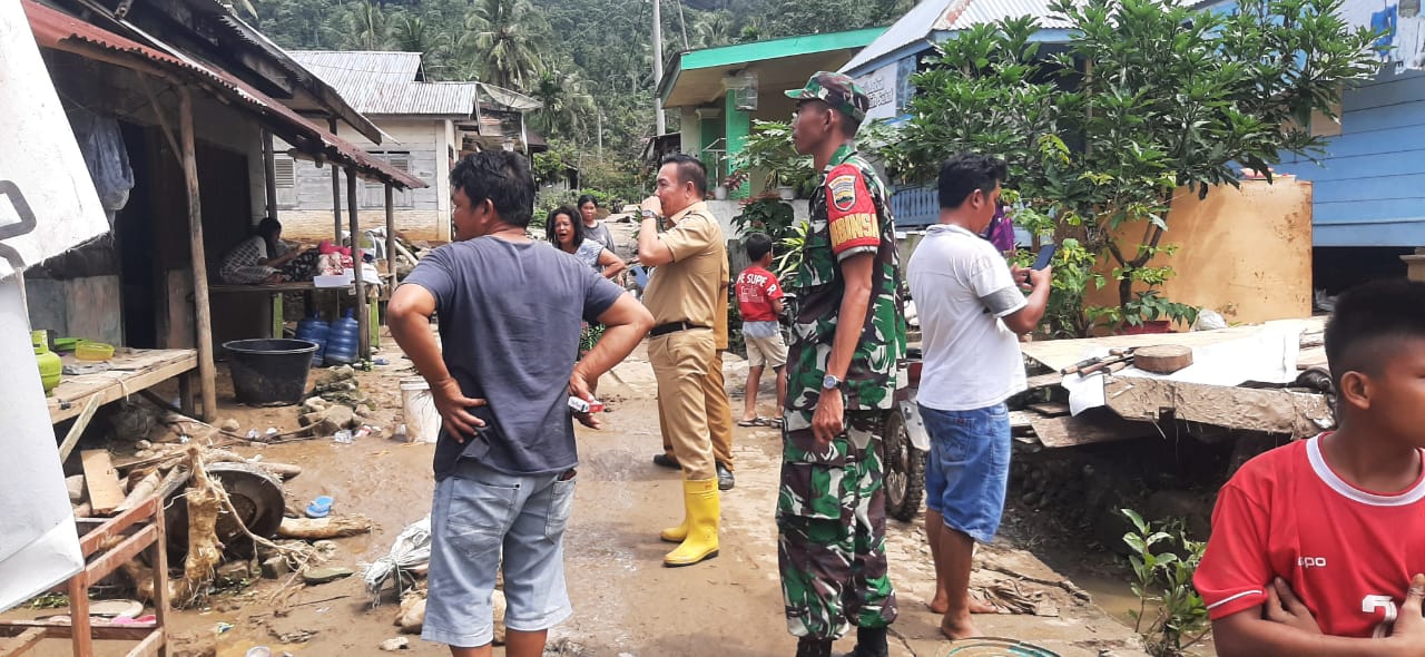 Dairi24jam|| Tanah Pinem- Babinsa Koramil 05/Tanah Pinem Kodim 0206/Dairi Kopda Jamilul bersama Pemerintah Kecamatan Tanah Pinem turun kedesa binaan untuk meninjau langsung lokasi yang terkena dampak banjir bertempat didesa Pamah Kecamatan Tanah Pinem Kabupaten Dairi, Kamis(06/03/2025).