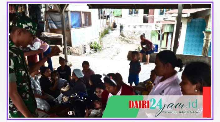 Dairi24jam | Tanah Pinem Kopda. Jamilul Babinsa Koramil 05/ Tanah Pinem jajaran Kodim 0206/ Dairi ikut serta mendampingi kegiatan Posyandu Balita yang dilaksanakan di Desa Pasir Mbelang, Kecamatan Tanah Pinem, Kabupaten Dairi – Sumut.