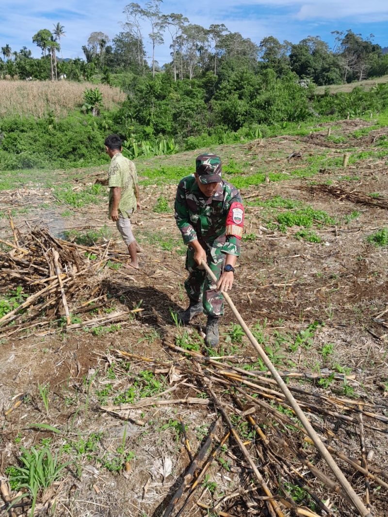 Dairi24jam || Tanah Pinem—Babinsa Koramil 05/TanahPinem Serda N.Siregar membantu Warga binaan membuka lahan pertanian yang akan ditanami jagung di Desa Sinar Pagi Kec.Tanah Pinem Kab.Dairi.