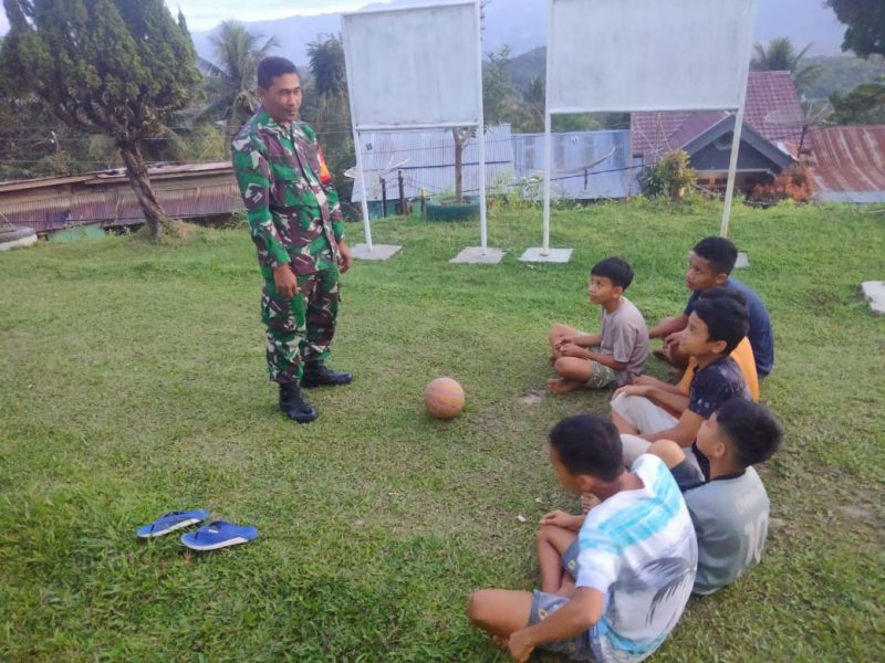 Dairi24jam || Tanah Pinem—Babinsa Koramil 05/Tanah Pinem Serda warpadli memberikan pemahaman dan pengertian tentang CINTA TANAH AIR Kepada siswa yang sedang bermain dihalaman Makoramil 05/Tanah Pinem,Selasa (25-07-2023)..