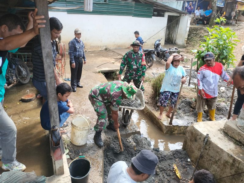 Dairi24jam || Tanah PinemBabinsa koramil 05/Tanah Pinem Kodim 0206/Dairi laksanakan gotong royong bersama masyarakat binaan di Desa Pasir Tengah,Kecamatan Tanah Pinem Kabupaten Dairi,Senin (06-02-2023)..