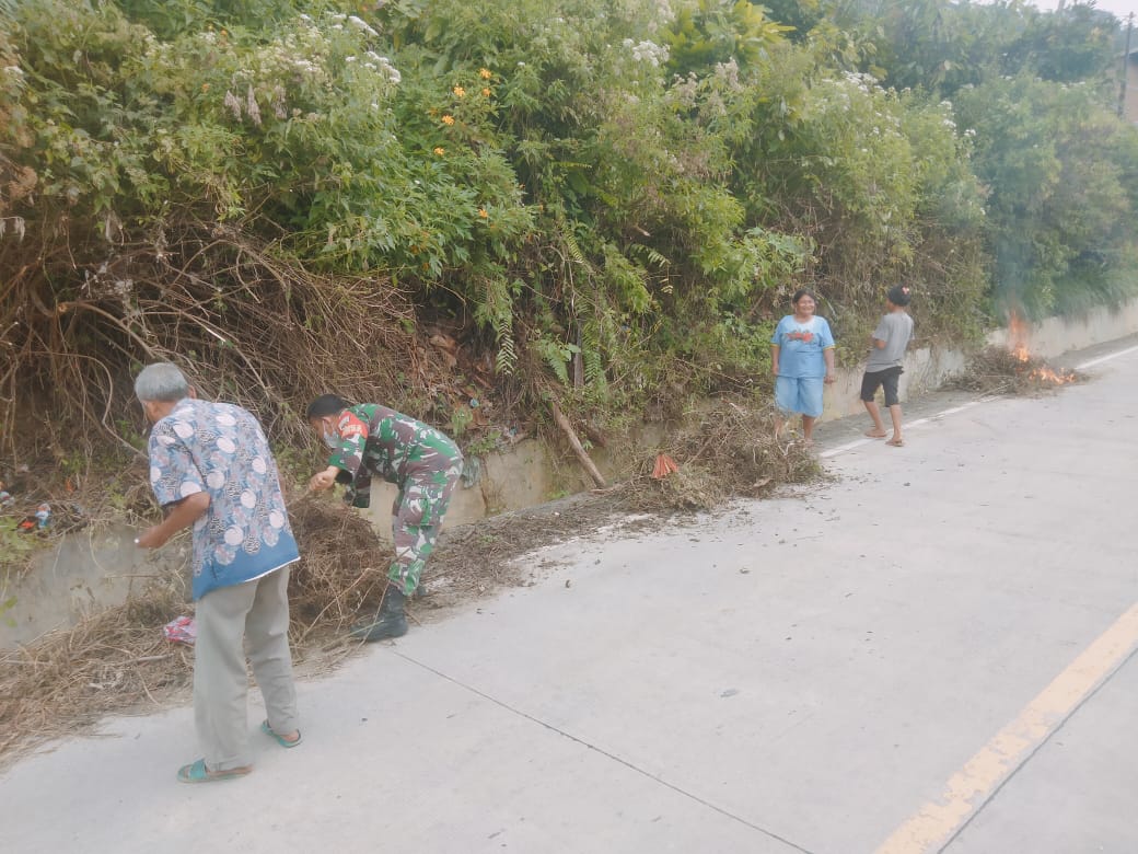 Dairi24jam || Tanah PinemBabinsa Koramil 05/Tanah Pinem Kodim 0206/Dairi Koptu J.A.ginting bersama warga masyarakat melaksanakan kegiatan kerja bakti sosial membersihkan lingkungan di Desa Kuta Buluh Kabupaten Dairi,Selasa (22-11-2022).