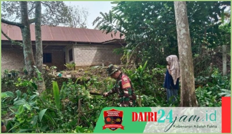 Dairi24jam | Tanah Pinem – Dalam rangka mewujudkan lingkungan bersih dan kepedulian terhadap kesehatan, Babinsa Koramil 05/ Tanah Pinem jajaran Kodim 0206/ Dairi, Sertu Hasanadi bergotongroyong bersama warga membersihkan jalan dan lingkungan tempat tinggal di Desa Kuta Buluh, Kecamatan Tanah Pinem, Kabupaten Dairi – Sumut, Jumat (22/11/2024).