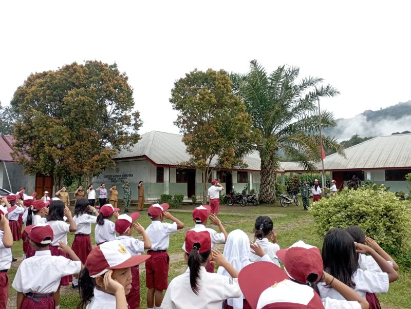 Dairi24jam || Tanah PinemBabinsa Koramil 05/Tanah Pinem Serda Warpadli melaksanakan kegiatan sebagai pembina upacara pengibaran bendera merah putih di SD Negeri Pamah kecamatan tanah pinem kabupaten Dairi,Senin (11-12-2023)..