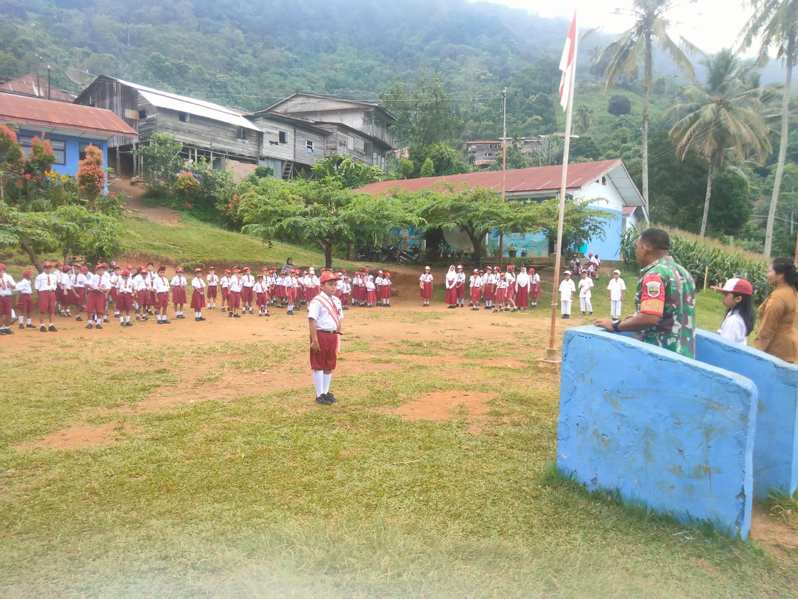 Selain itu, dalam upacara yang diikuti lebih dari 123 orang murid kelas 1 sampai kelas 6 beserta para guru tersebut, Babinsa juga mengatakan, bahwa anak-anak harus bisa menjaga kebersihan diri dan lingkungan sekolah serta harus taat kepada Tuhan Yang Maha Esa dan patuh terhadap nasehat guru dan orang tua.