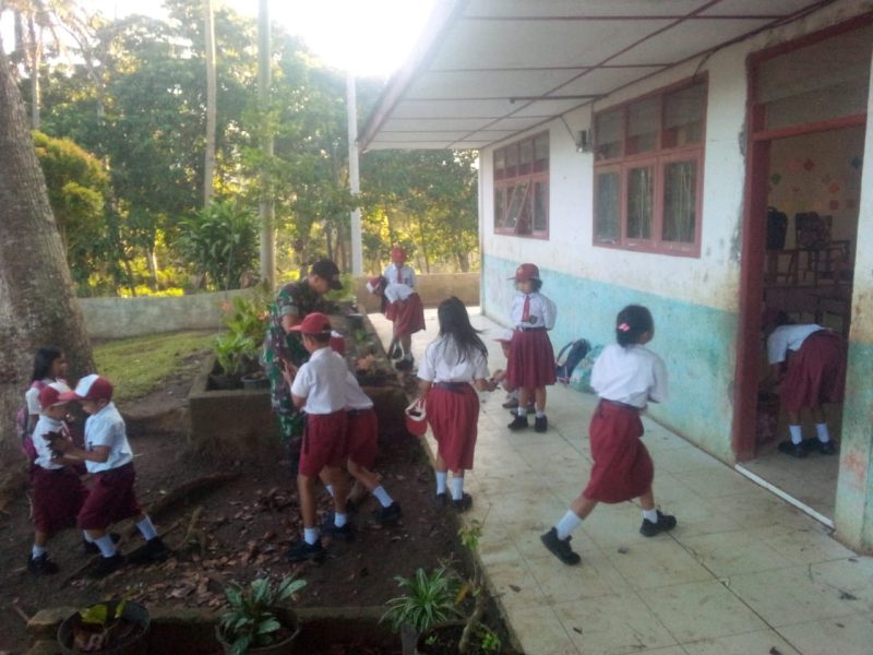 Dairi24jam || Tanah Pinem—Dalam upaya memperkuat rasa nasionalisme dan wawasan kebangsaan di kalangan generasi muda, Babinsa Koramil 05/TP Kodim 0206, Kopda Baihaki, melakukan kegiatan pembersihan bersama siswa kelas SDN 030442 Pamah Kecamatan Tanah Pinem Kabupaten Dairi,Kamis (15-02-2024)..