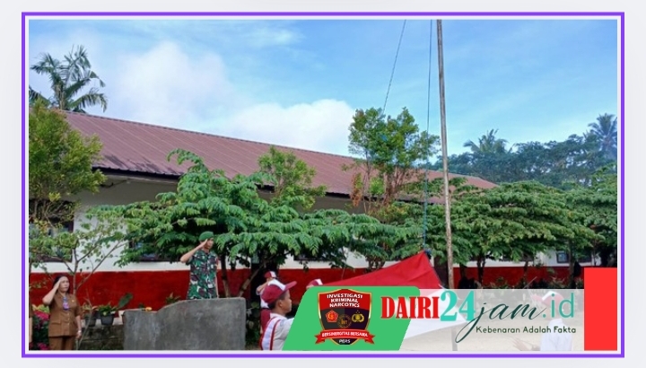 DAIRI24JAM—Babinsa Koramil 05/Tanah pinem kodim 0206/Dairi Kopda Jamilul bertindak sebagai Inspektur Upacara (Irup), pada pelaksanaan upacara bendera di SD 033921 Simbitek , Desa Tanah Pinem ,Kecamatan Tanah Pinem,Kabupaten Dairi-Sumut (24-02-2025)..