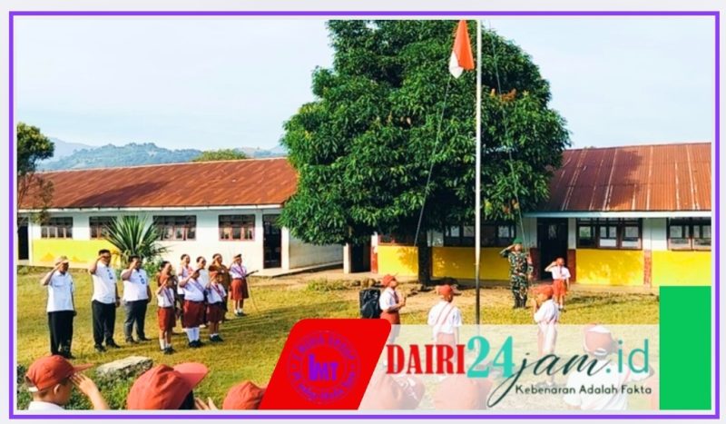 Dairi24jam|| Tanah Pinem- Dalam rangka menanamkan rasa cinta tanah air dan kedisiplinan sejak dini, Babinsa Koramil 05/Tanah Pinem Kodim 0206/Dairi, Sertu Hasanadi , bertindak sebagai Pembina Upacara Bendera di SD Negeri 030441 Desa Pamah Kecamatan Tanah Pinem Kabupaten Dairi Sumatera Utara,Senin (03/11/2025).Pukul 07.30.wib.