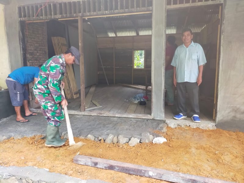 Dairi24jam || Kutabuluh – Babinsa koramil 05 Tanah Pinem Serda J Simbolon,Laksanakan Komsos awal Tahun 2023 ,Bersama Warga Desa Alur Subur. Sekaligus membantu membenahi rumah tempat tinggal warga.