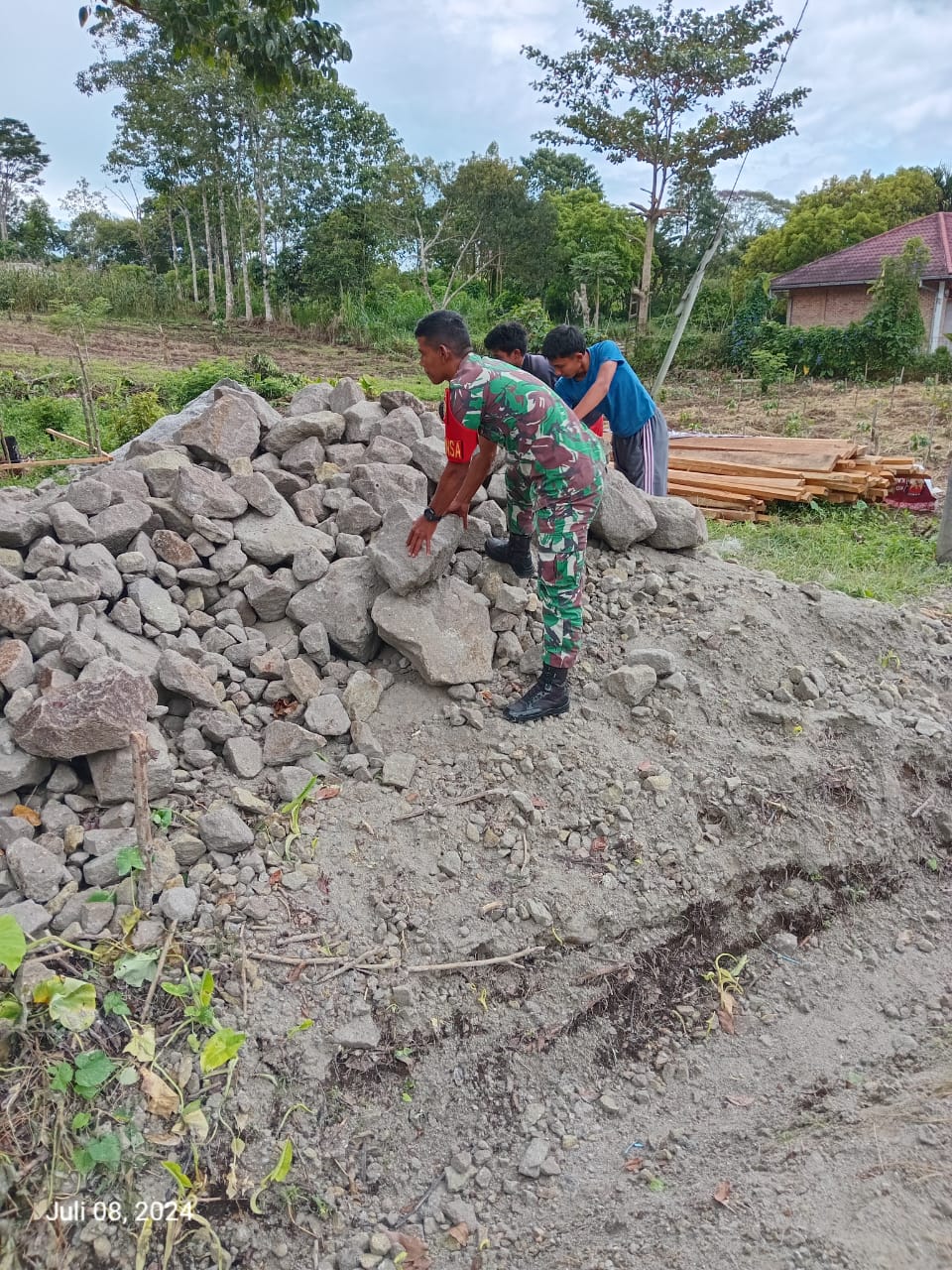 Dairi24jam|| Sidikalang- Wujud kebersamaan dan meningkatkan kerja sama di wilayah binaan, Babinsa Koramil 05/Tanah Pinem Serda Andianto melaksanakan fotong royong di rumah BapakRinaldi Tumangger di desa Sinar Pagi Kecamatan Tanah Pinem, Sabtu(3/8/2024).