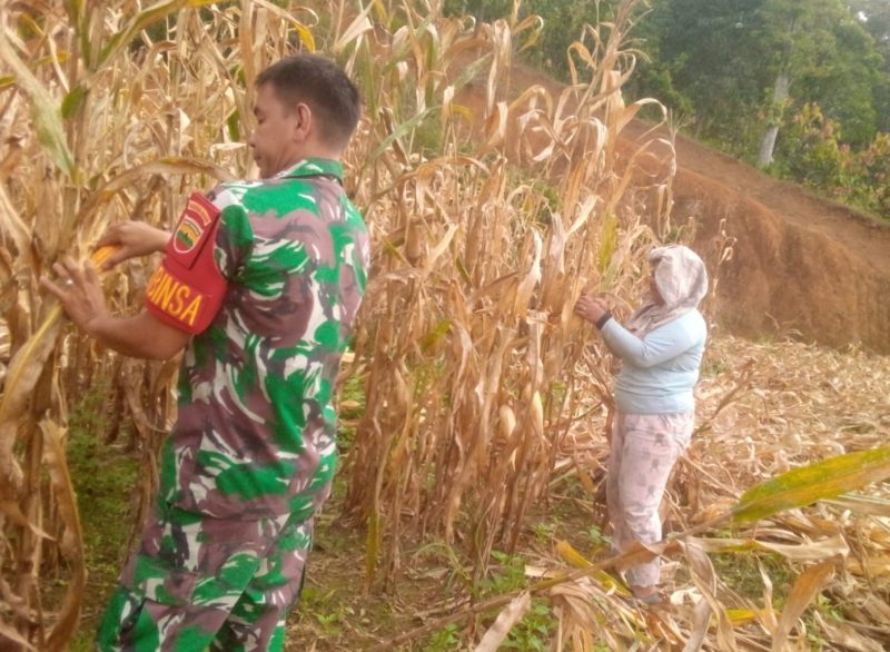 Memanen jagung hasil kerja sama Babinsa dan kelompok tani ini merupakan bentuk dukungan terhadap program ketahanan pangan yang digalakkan pemerintah.