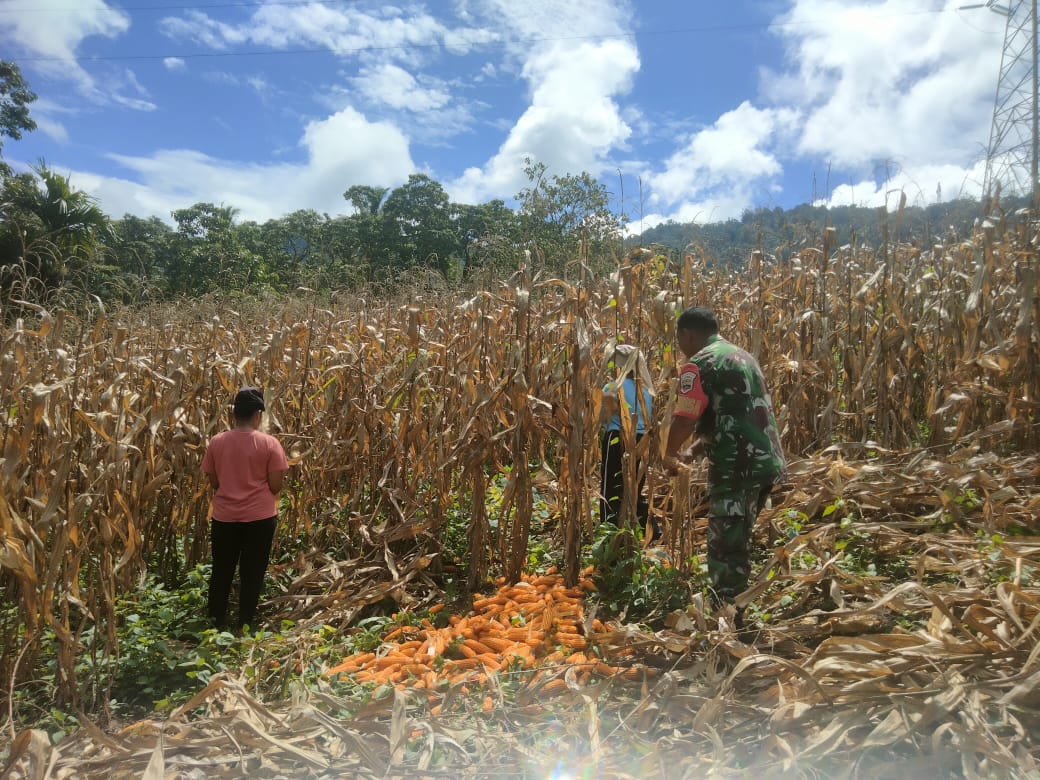 Dairi24jam|| Tanah Pinem- Babinsa Koramil 05/ Tanah Pinem Kodim 0206 Dairi Koptu J.A.Ginting , melaksanakan kegiatan hanpangan panen jagung milik warga binaan yang terletak di Desa Pamah Kecamata Tanah Pinem Kabupaten Dairi, Jumat(26/7/2024).