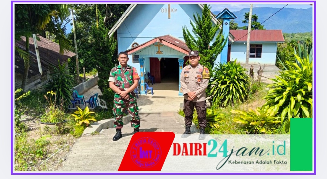 Guna memberikan rasa nyaman dan aman bagi umat Kristiani yang sedang melaksanakan ibadah peringatan Kenaikan Isa Almasih, Babinsa Koramil 05/ Tanah Pinem Serda Warpadli dan Bhabinkamtibmas, melakukan pengamanan di Gereja GBKP Kuta Buluh Kecamatan Tanah Pinen Kabupaten Dairi Sumatera Utara, Kamis(29/5/2025).