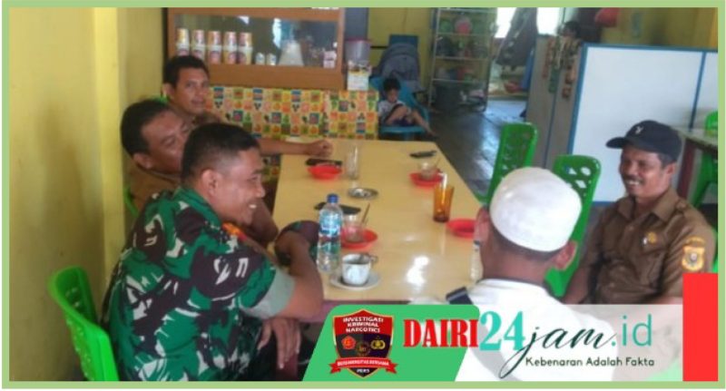 Pada kesempatan tersebut, Serda. Warpadli berbincang bincang dengan tokoh masyarakat dan perangkat Desa untuk mengetahui kondisi sosial masyarakat sekaligus untuk mendapatkan data dan fakta sebagai penunjang tugas kewilayahan.