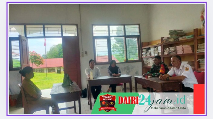 Dairi24jam|| Tanah Pinem- Babinsa Koramil 05/ Tanah Pinem Kodim 0206/Dairi Serda Warpadli melaksanakan komsos dengan perangkat sekolah SD Negeri Mangan Molih Kecamatan Tanah Pinem Kabupaten Dairi,Kamis(09/1/2024).