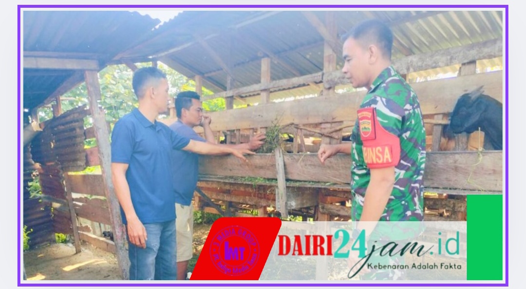 Dairi24jam|| Tanah Pinem- Babinsa Koramil 05/ Tanah Pinem Babinsa Kodim 026/Dairi Kopda Baihaki menyempatkan waktu membantu pendampingan salah seorang peternak Kambing,di Desa Renun Kecamatan Tanah Pinem Kabupaten Dairi , Selasa(03/5/2025).
