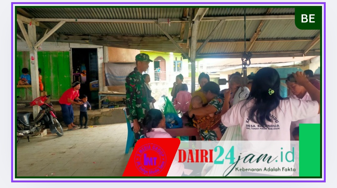 Dairi24jam|| Tanah Pinem- Kopda Jamilul, personil Babinsa Koramil 05/ Tanah Pinem, jajaran Kodim 0206/Dairi melakukan pendampingan kegiatan imunisasi balita di Pustu Desa Pasir Mbelang, Kecamatan Tanah Pinem, Kabupaten Dairi Jumat(22/8/2015).