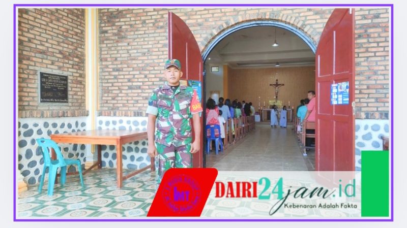 Babinsa Koramil 05/TP Laksanakan Pengamanan Ibadah Kebaktian Di Gereja Katolik Kuta Buluh