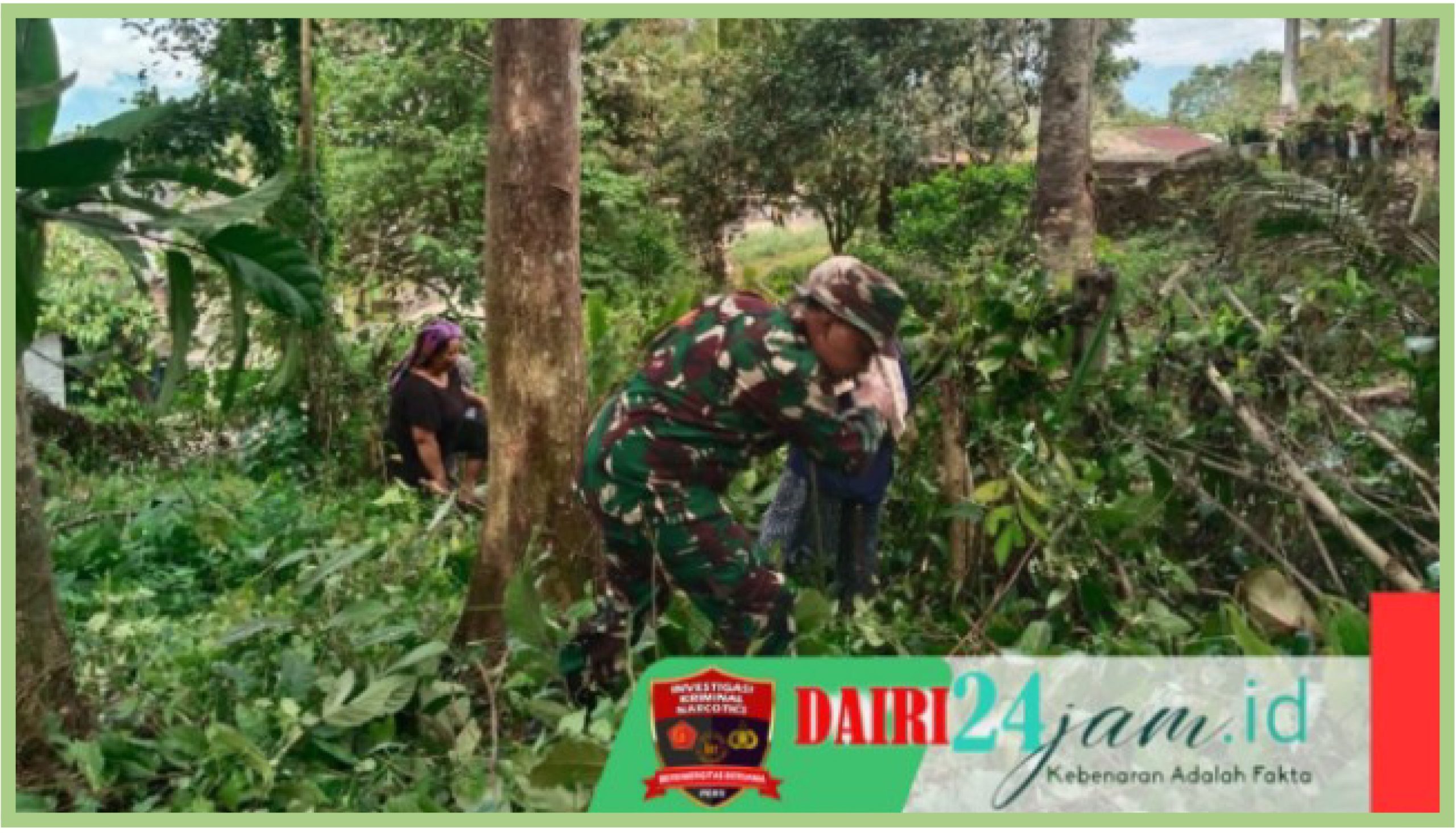 Dairi24jam | Dairi – Babinsa Koramil 05/ Tanah Pinem jajaran Kodim 0206/ Dairi, Sertu. Hasanadi tampak semangat melaksanakan gotongroyong bersama warga masyarakat membersihkan parit dan semak belukar di Desa Kuta Buluh, Kecamatan Tanah Pinem, Kabupaten Dairi – Sumut, Senin (02/12/2024).