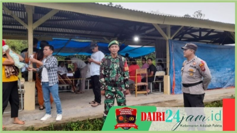 Dairi24jam | Pakpak – Babinsa Koramil 06/ Kerajaan, Sertu Haryoko bersama Bhabinkamtibmas Polsek Sukaramai melaksanakan pengamanan di Tempat Pemungutan Suara (TPS) Pemilu di Desa Bandar Baru, Kecamatan Sttu Jehe, Kabupaten Pakpak Bharat – Sumut, Rabu (27/11/2024).