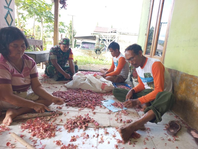 Babinsa Koramil 06 Kerajaan Dampingi Petani Membersihkan Hasil Panen Bawang Merah