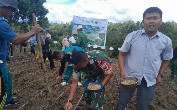 Dairi24jam || Pakpak Bharat–Babinsa Koramil 06/Kerajaan Hadiri undangan dalam rangka melaksanakan Gerakan Tanam Serentak Program Pertambahan Areal Tanam (PAT) padi Gogo se Kabupaten Pakpak Bharat bertempat di desa Siempat Rube II, Kecamatan Siempat Rube ,Kabupaten Pakpak Bharat,Jumat (06/09/2024).