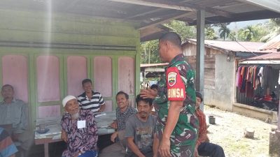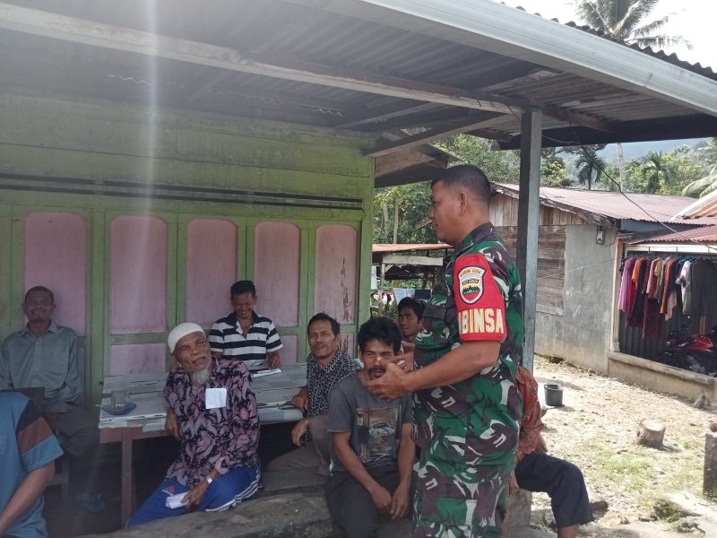Dairi24jam || Pakpak Bharat-–Babinsa Koramil 06/Kerajaan Kodim 0206/Dairi Serda P.Lumban Raja gelar komsos dengan tokoh masyarakat di Desa Tanjung Mulia Kecamatan Sttu Jehe Kabupaten Pakpak Bharat,Selasa (28-03-2023)..