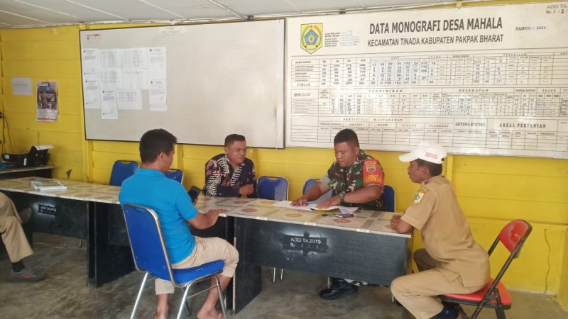 Kali ini Serda Haloho Babinsa Koramil 06/Kerajaan, Kodim 0206/Dairi, melaksanakan Komsos bersama perangkat Desa di Kantor Desa Mahala, Kecamatan Kerajaan, Kabupaten Pakpak Bharat, Sabtu (22/04/2023).