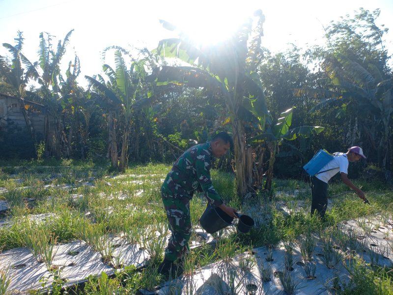 Dairi24jam || Kuta Saga—Babinsa Koramil 06/Kerajaan Serda Rudy Limbong membantu petani Dalam merawat dan membersihkan gulma yang tumbuh di tanaman bawang Warga Desa Kuta Saga , Kecamatan Kerajaan , Kabupaten Pakpak Bharat,Rabu (06-03-2024)..